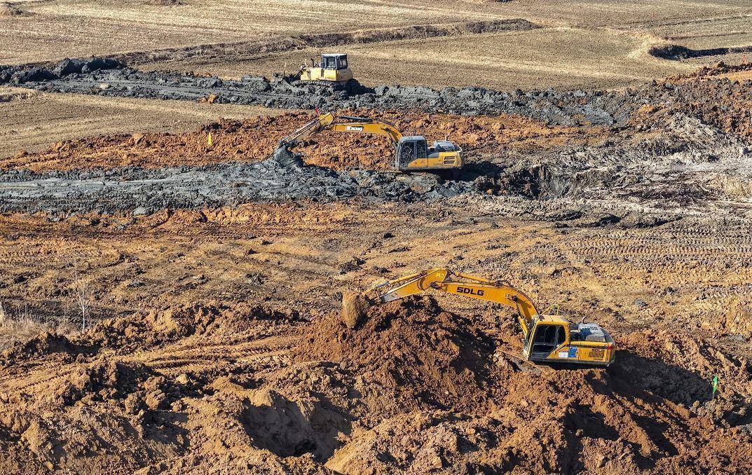 2026年1月2日,安徽省蚌埠市五河县申集镇莫圩村水利设施施工现场,工人利用机械在施工作业。